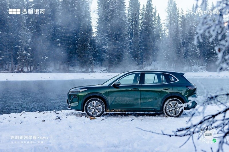 在此次交车仪式之前吉利银河星舰7 EM-i在新疆开启了为期三天的探索旅程,此次长测全长约1500km,吉利银河星舰7 EM-i战胜了许多的挑战,穿过了风雪天气,走过了超厚的积雪路段,在寒冷的阿勒泰地区,吉利银河星舰7 EM-i展现了其卓越的节能性能。即使在极端低温条件下,这款SUV依然能够保持极低的油耗水平。