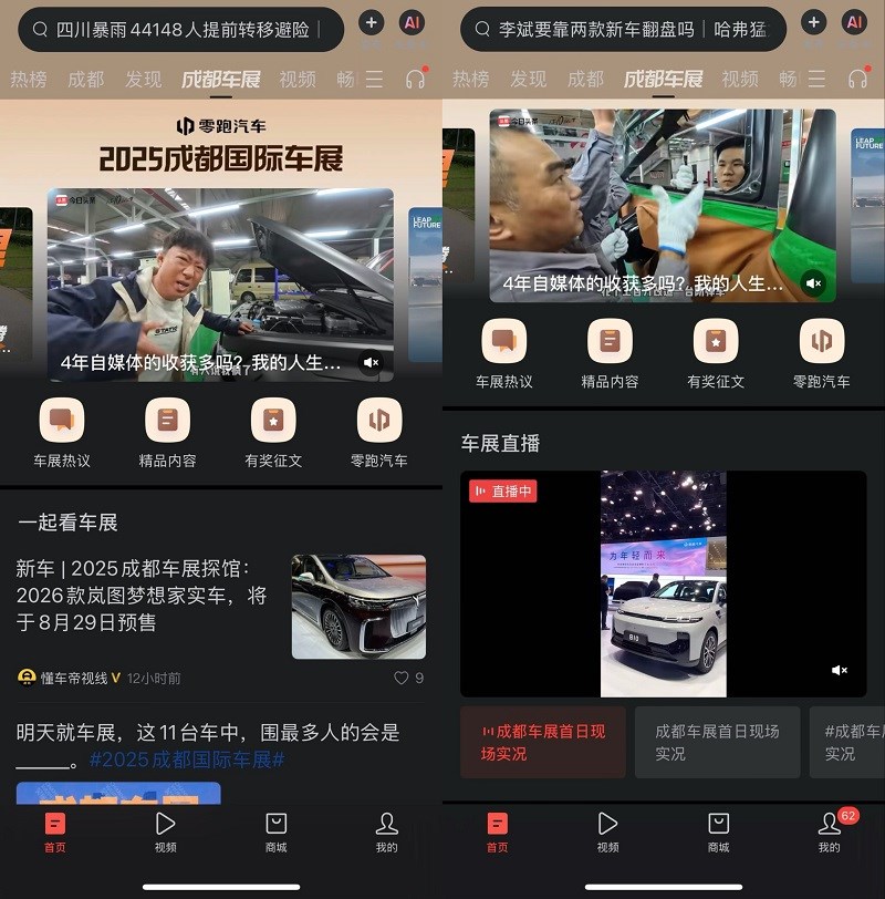 在这其中,今日头条连续2年发起「成都车展」行业IP,联合抖音、懂车帝两大平台,以 "领潮而立・向新而行" 为主题,打造三端协同的车展内容生态,助力车企品牌在这一重要节点实现品牌曝光与用户种草的双重突破。通过全网云播车展,今日头条不仅串联起了众多汽车品牌的创新成果与消费需求,更成为了一扇观察中国汽车市场趋势的 “主视窗”。